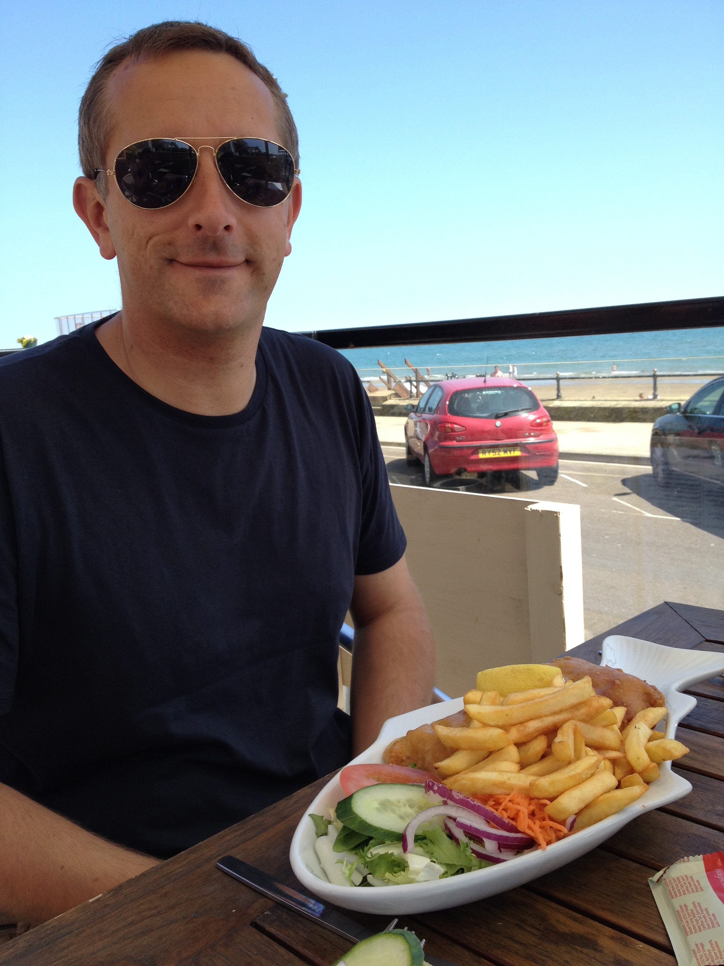 We walked along the seafront and found a restaurant just across the road from the beach, where we had fish and chips for lunch.